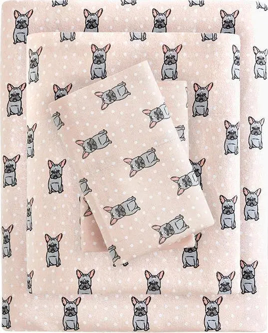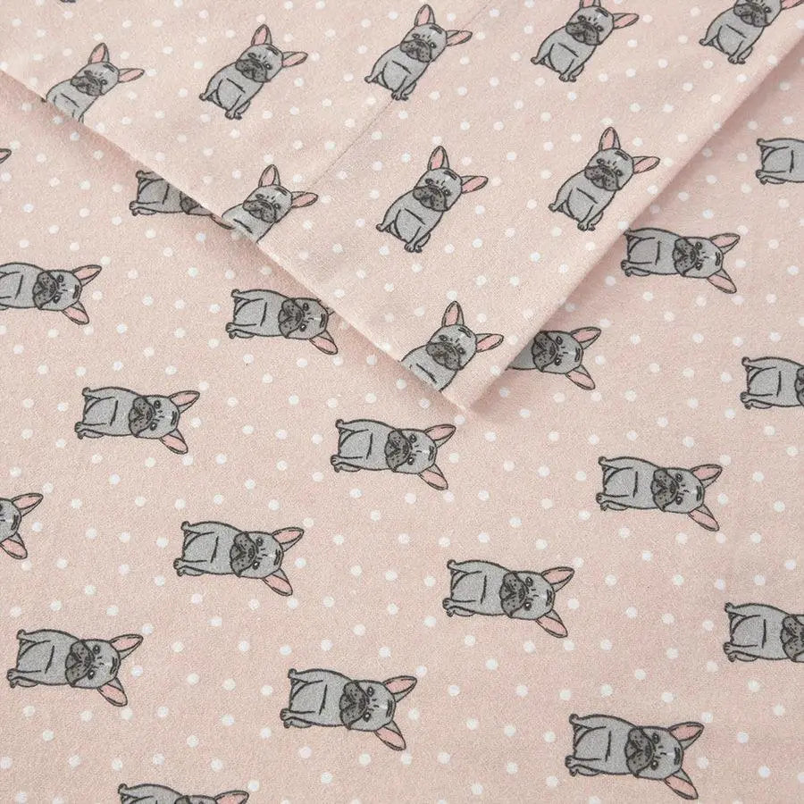 100% Cotton Flannel Printed Sheet Set Pink French Bulldog TN20-0230