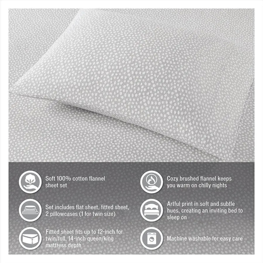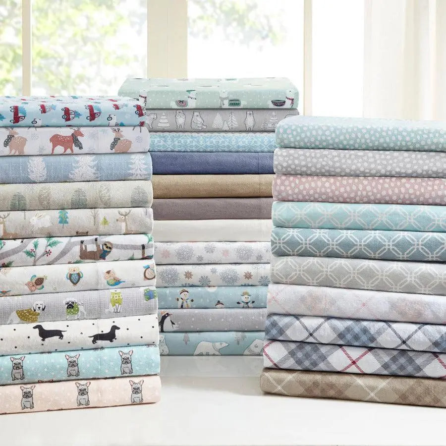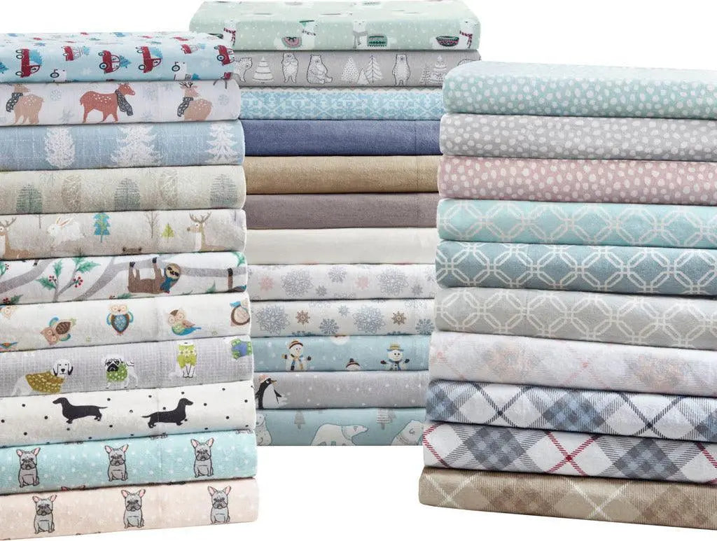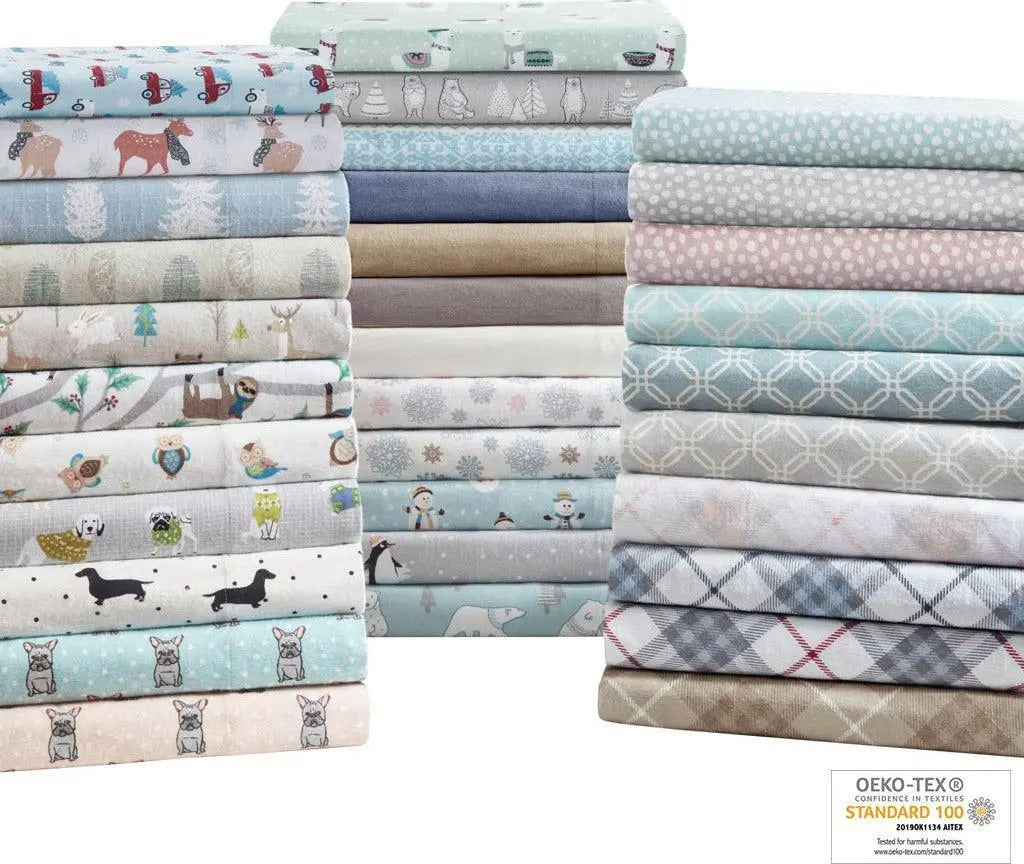 Keep warm and cozy with this ultra-soft cotton flannel sheet set, perfect for cold winter nights! Featuring a variety of prints these cotton flannel sheets provide a soft and inviting look. Machine washable for easy care. These cotton flannel sheets are also OEKO-TEX certified, meaning they do not contain any harmful substances or chemicals, ensuring quality comfort and wellness. Set includes: 1 Flat Sheet, 1 Fitted Sheet, 2 Pillowcases (1 in Twin/TwinXL sizes).