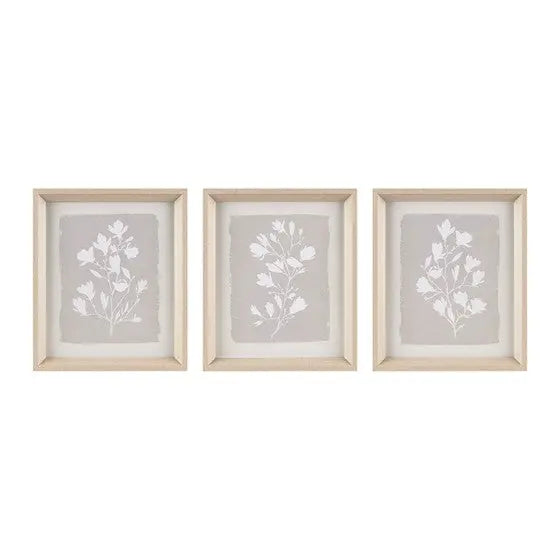 - White and grey framed wall decor set with botanical floral art