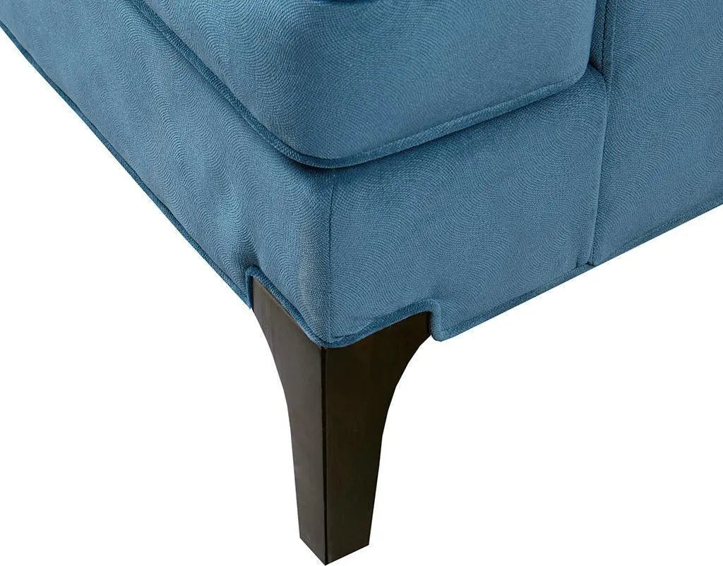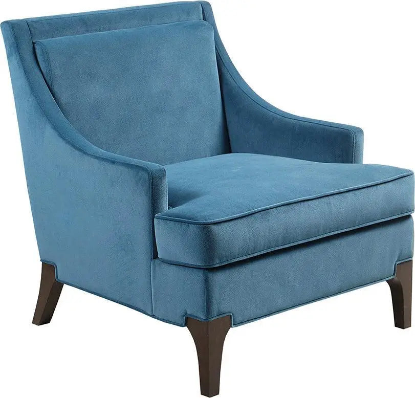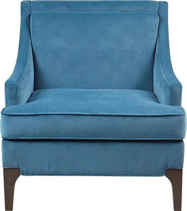 Created exclusively for the Martha Stewart Perry Street furniture collection that embodies urban living, give your space a handsome allure with the Anna Arm Accent Chair. This arm chair is upholstered and features a dark coffee finish on the solid wood legs for a chic modern look. An included lumbar pillow provides extra comfort and support. In the city, a clean, urban-modern approach is the rule. This understated, efficient and sometimes glamorous lifestyle, celebrates precision and luxury that is distinguished by beautiful colors and the highest quality materials. Leg assembly required.