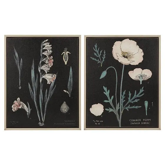 Botanical Illustration 2-piece Framed Canvas Wall Art Set Black Multi