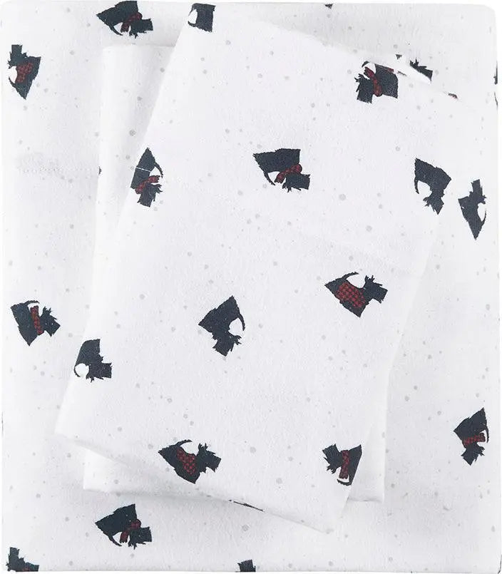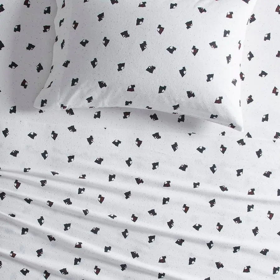 Cotton Sheet Set Black|White Scottie Dogs WR20-3314