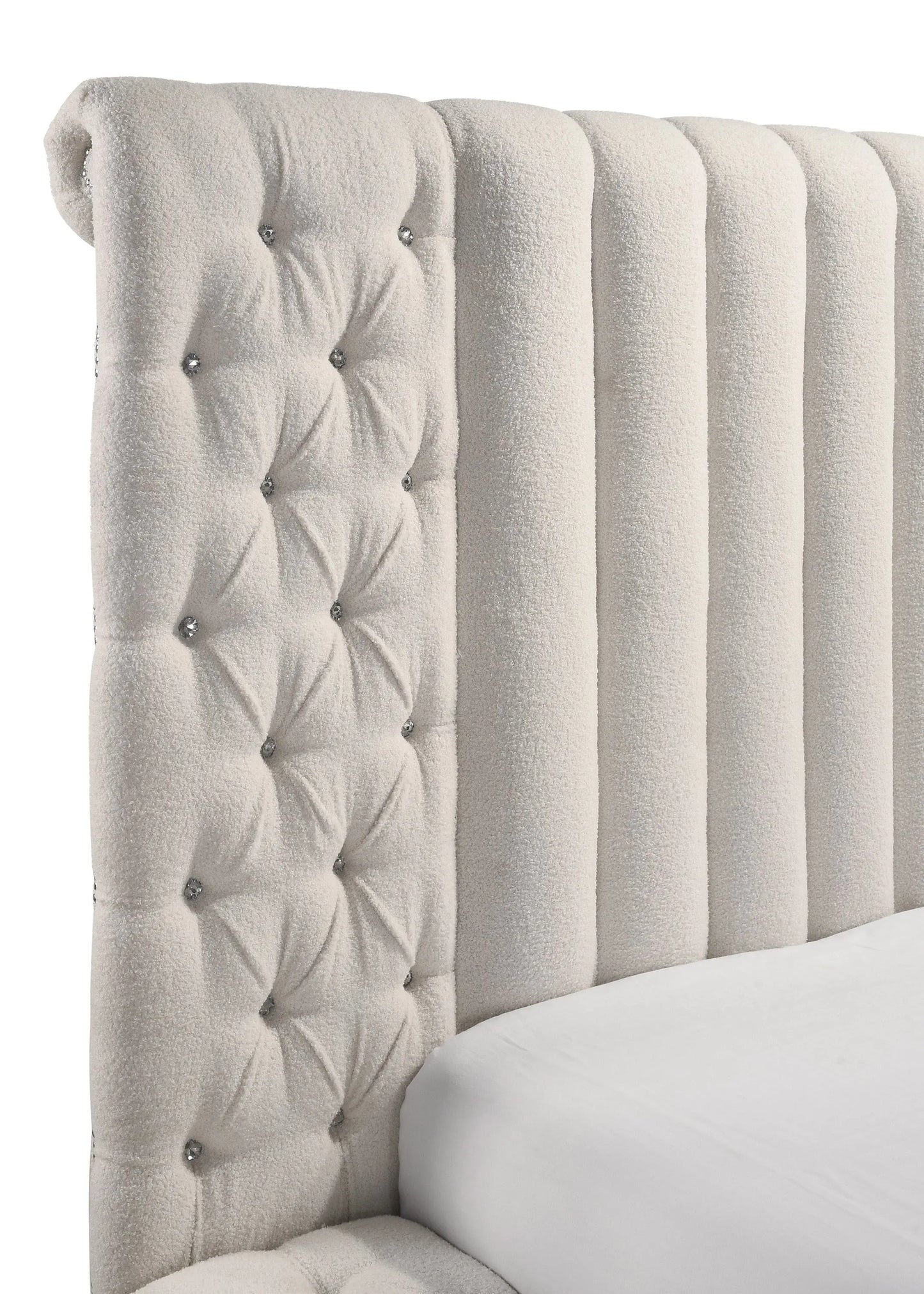 Danbury White Boucle King Upholstered Storage Panel Bed