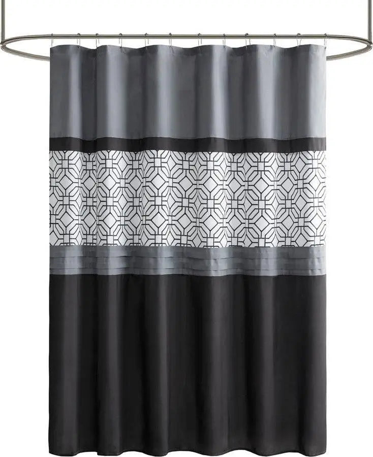 Donnell Embroidered and Pieced Shower Curtain Black & Grey