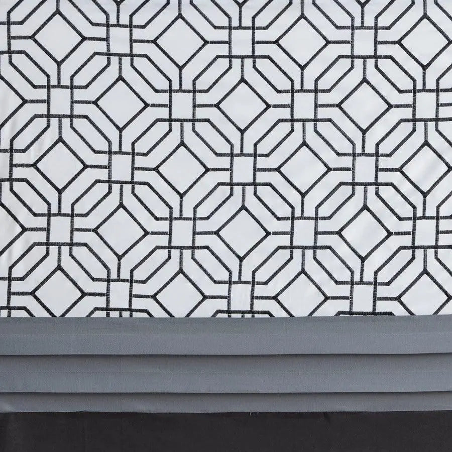 The 510 Design Donnell Embroidered and Pieced Shower Curtain offers a fresh update to your bathroom. A pintucked and pieced design is featured in grey and black hues, for a simple updated look to your decor. An embroidered geometric design adds texture and dimension, while an added lining provides better drapability and an extra layer of privacy. Made from soft microfiber, this pieced shower curtain brings a refreshing touch to your bathroom decor.