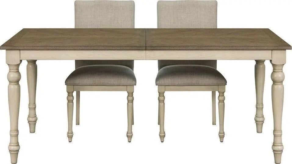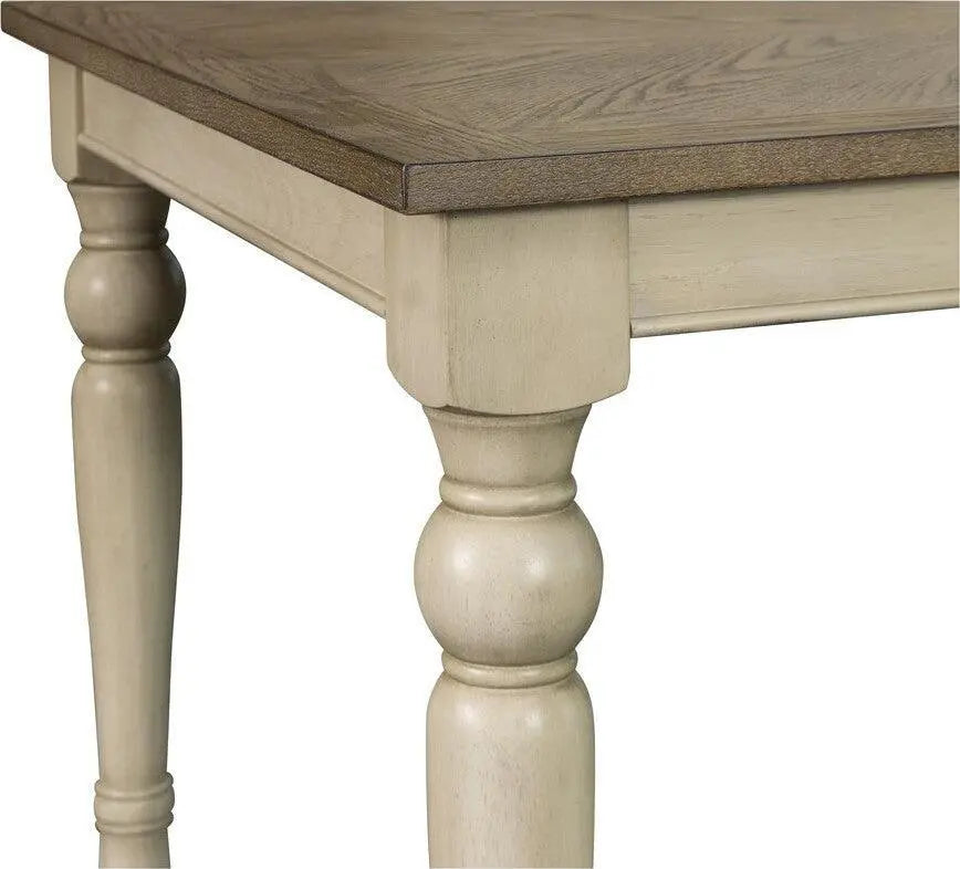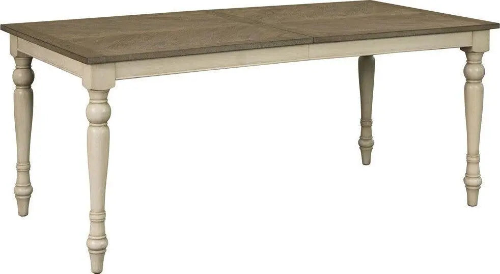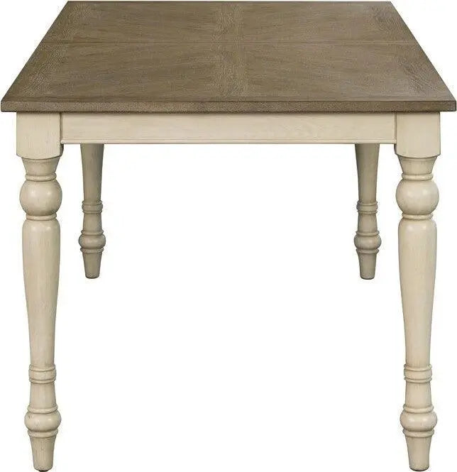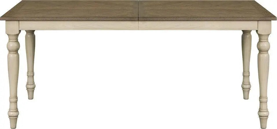 - Charming two-tone farmhouse rectangle dining table