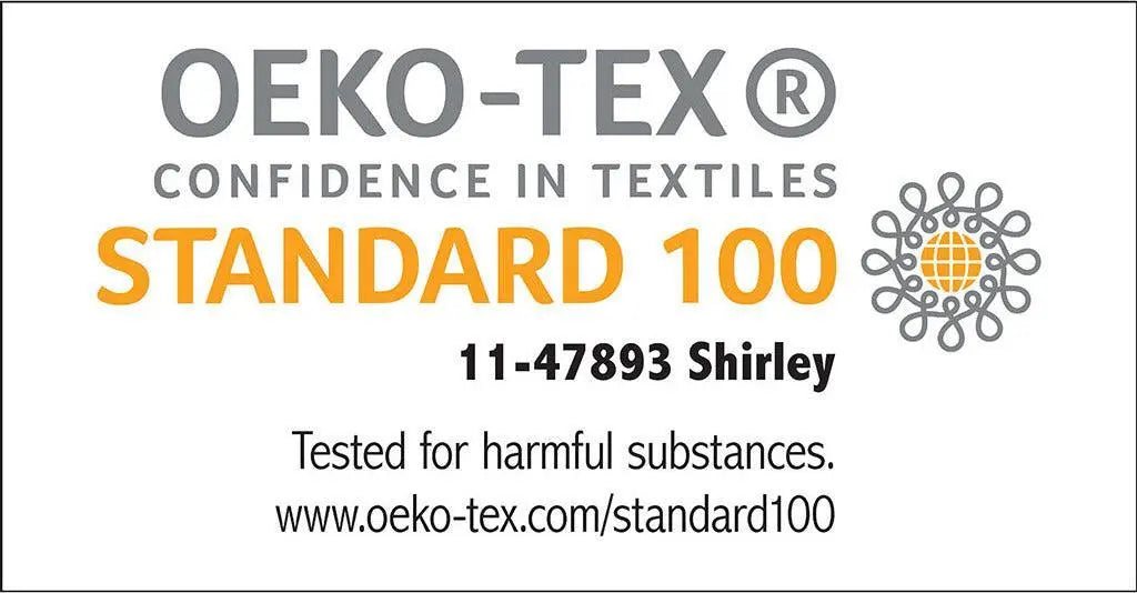 - Oeko-Tex Certified, includes no harmful substances or chemicals (# 11-47893)