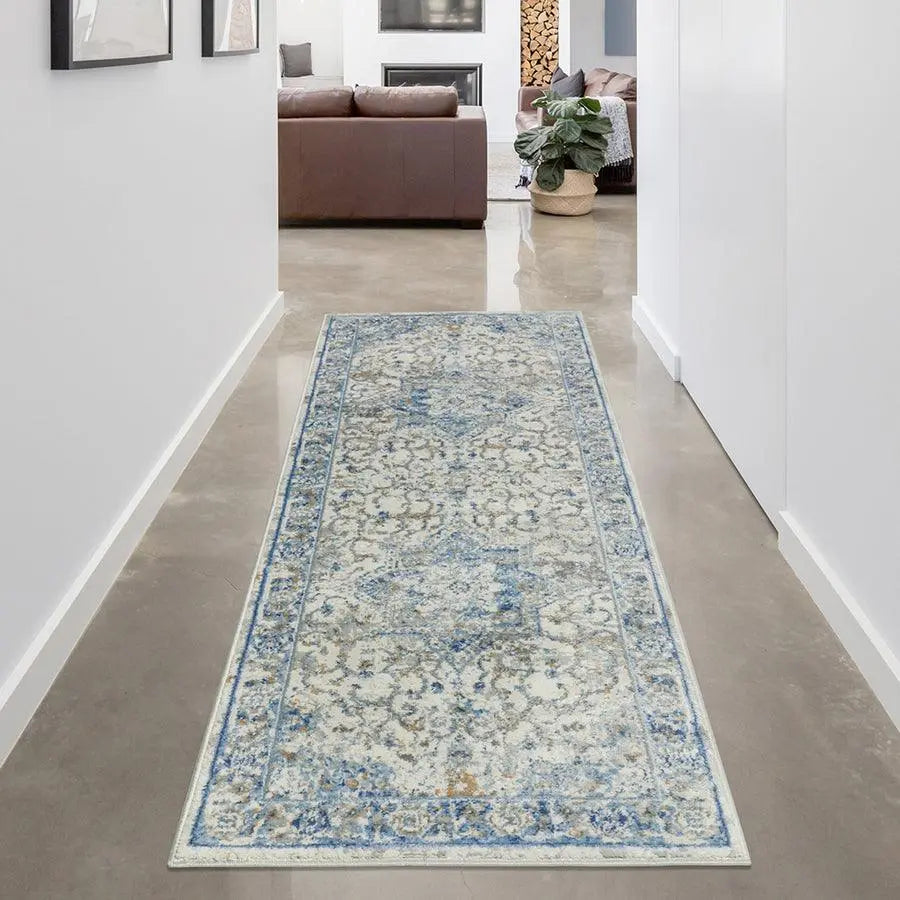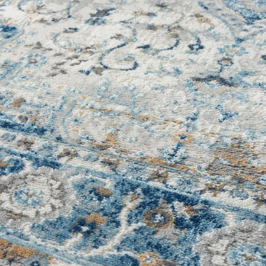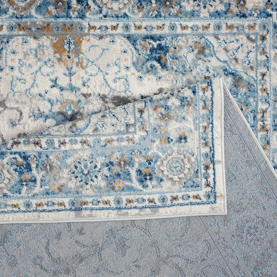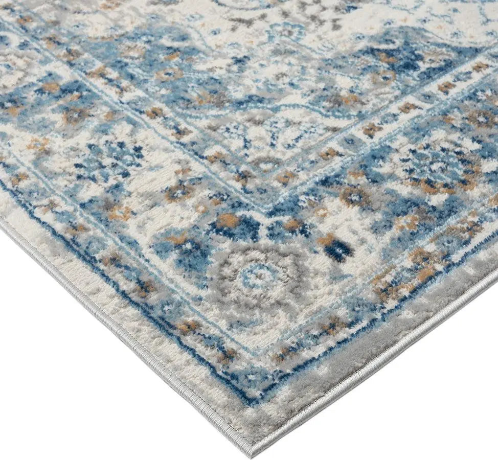 The Madison Park Frances Medallion Woven Area Rug offers a beautiful traditional update to your home decor. Made in Turkey, this machine woven area rug features a medallion pattern in shades of light blue to create a globally inspired look. The soft, medium pile makes the woven rug well suited for high traffic areas, while the transparent sprayed latex reverse helps keep the rug from sliding. A rug pad is still highly recommended to keep the rug in place. Stain and fade resistant, this woven area rug is OEKO-TEX certified, meaning it does not contain any harmful substances or chemicals to ensure quality comfort and wellness. Rug is available in multiple sizes, which makes it perfect for your living room, family room, or entryways. Clean with a vacuum or by spot cleaning.