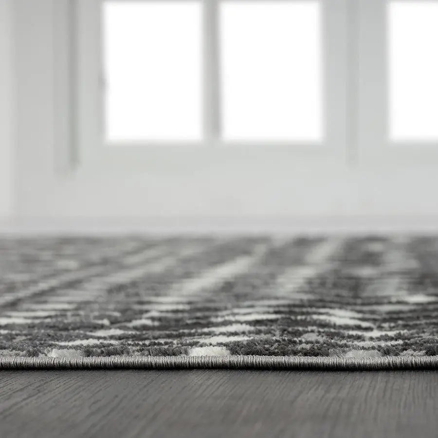 Add a fashionable style to your living space with the Madison Park Hannah Moroccan Area Rug. This machine woven, cut area rug features a charcoal and grey globally inspired print creating a rich and beautiful, look and feel. The medium soft pile provides simple comfort, as a transparent sprayed latex reverse helps to prevent rug from sliding making it well suited to high-traffic areas in your home. Easy to clean with a vacuum or spot cleaning, while also stain and fade resistant - this area rug brings a splash of color and a textural element to any home decor. This woven area rug is OEKO-TEX certified, meaning it does not contain any harmful substances or chemicals to ensure quality comfort and wellness. Available in multiple colors and sizes, this rug is perfect for any living room, family room, and or other room decor. A rug pad is highly recommended to keep the rug more secured in place; Rug pad sold separately.