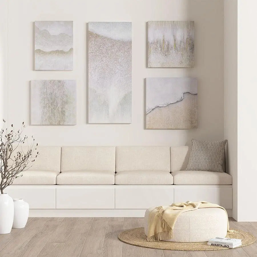 Natural Essence Abstract Glitz Canvas 5 Piece Gallery Set in Neutral Colorway Neutral