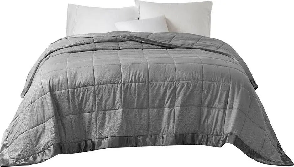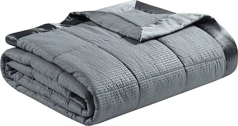 Oversized Down Alternative Blanket with Satin Trim Charcoal MP51-7650