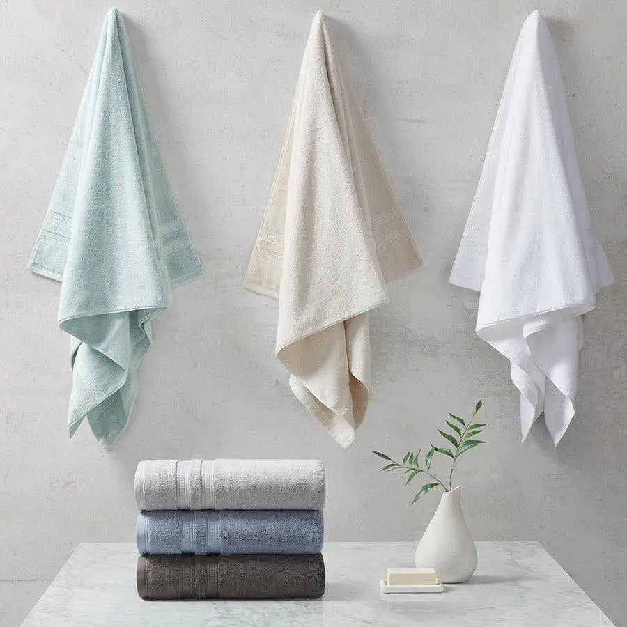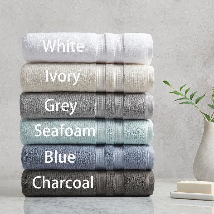- Set includes: 2 bath (30x54), 2 hand (16x28), and 2 wash (13x13) towels