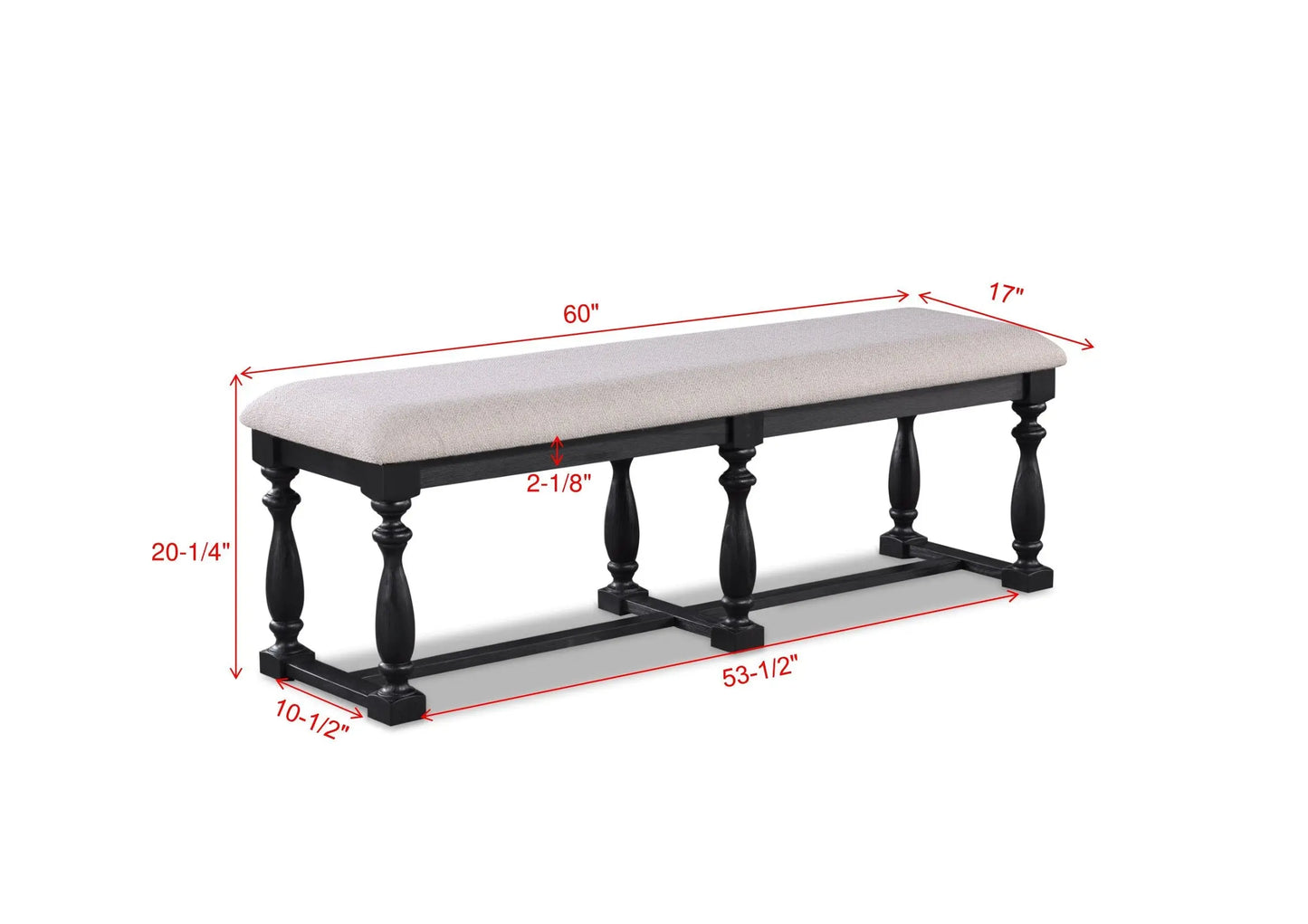 Dimensions: 60" X 17" X 19.5"H & CUSHION+FRAME 5.38"/ LEG 2.75"