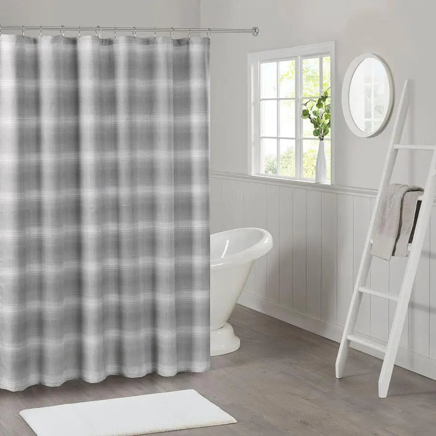 The Madison Park Sade Ombre Waffle Weave Shower Curtain offers a modern update to your bathroom decor. This shower curtain features a waffle weave construction that gives a rich texture and a soft hand feel. The cross-dye treatment creates an all-over grey ombre pattern, for a chic contemporary look. Measuring 72Óx72Ó, this modern shower curtain adds a gorgeous touch to your bathroom and is machine washable for easy care.