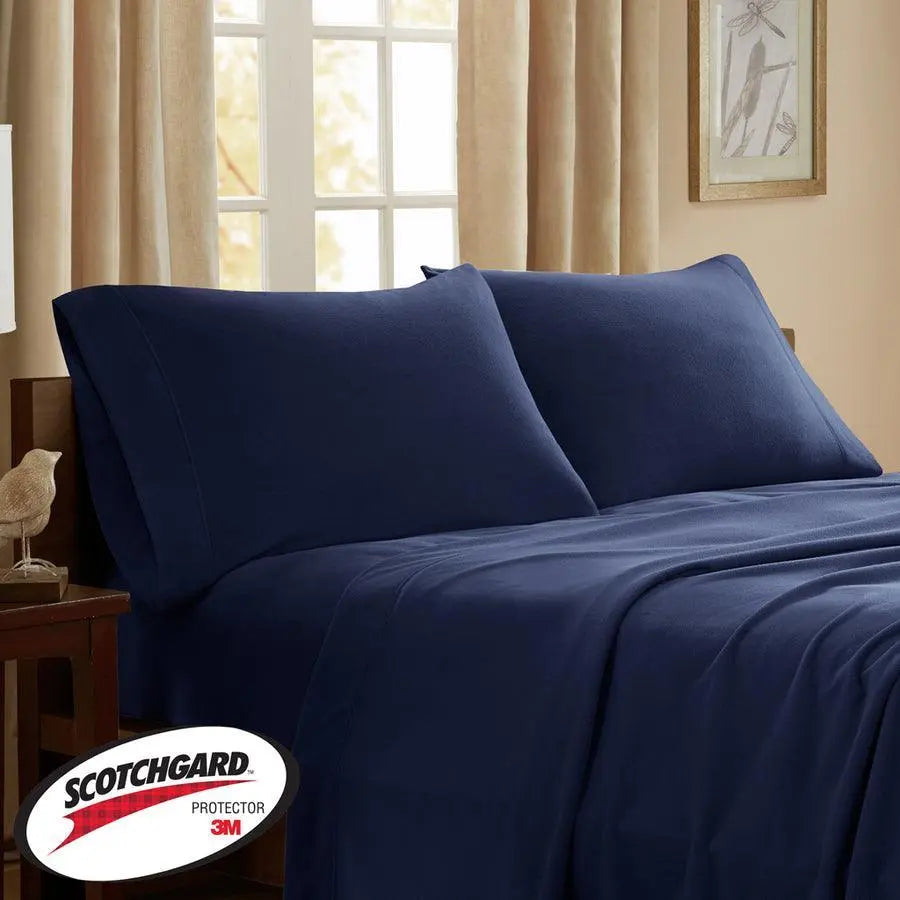Fall asleep in the cozy comfort of this solid ultra-soft micro fleece sheet set. This sheet set was designed not to lint, pill, and/or shed making in extremely durable and providing long-lasting comfort. It also features a 3M Scotchgard treatment that helps release stubborn stains and lasts wash after wash. These microfleece sheets are also OEKO-TEX certified, meaning they do not contain any harmful substances or chemicals, ensuring quality comfort and wellness. Set includes: 1 Flat Sheet, 1 Fitted Sheet, 2 Pillowcases (1 in Twin).